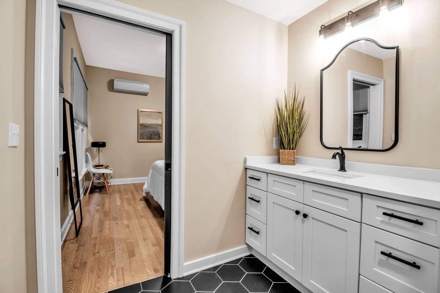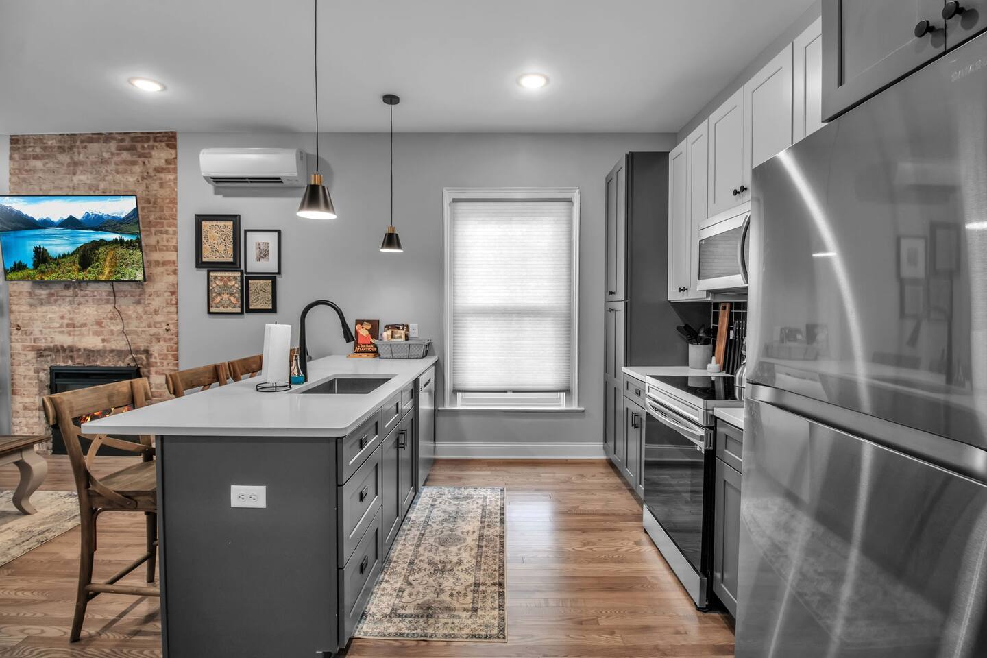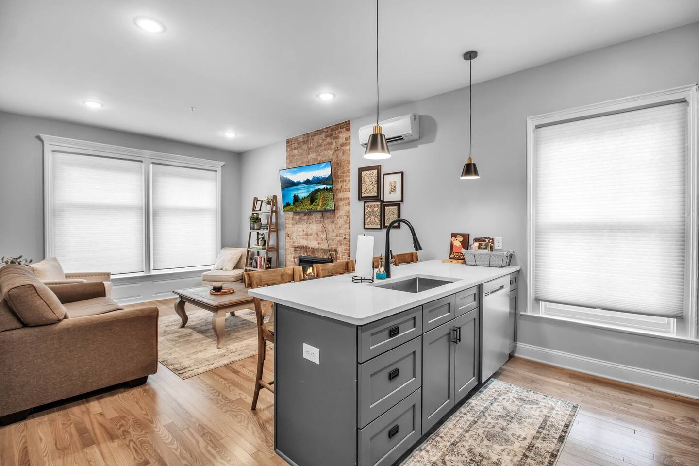 4 Bedrooms and 4 Bathrooms: Each unit includes 2 bedrooms and 2 bathrooms, providing ample space and privacy for everyone in your group. Two Kitchens and Living Areas: Both apartments have fully equipped kitchens and cozy living rooms, giving you the flexibility to cook, relax, and socialize in whichever space you prefer. Modern Amenities: Enjoy complimentary Wi-Fi, smart TVs, and a variety of thoughtful touches to make your stay comfortable. Ideal for Socializing: While the units are separate, guests often gather in one apartment’s living room or kitchen for shared meals and activities. Perfect for Groups: This setup functions more like renting two hotel suites, making it an excellent option for groups seeking both togetherness and personal space. Whether you're in town for a family reunion, wedding, or a work trip, the dual-apartment layout ensures a comfortable and flexible stay. Location Highlights: Conveniently located near local attractions, parks, and dining options. Free street parking for your convenience. Easy access to highways for exploring the Allentown area and beyond. ⭐Please Note:⭐ This property includes two separate entrances—one for each unit. Both apartments are self-contained and do not share any indoor spaces. Guests can easily move between the units, as they are just steps apart.