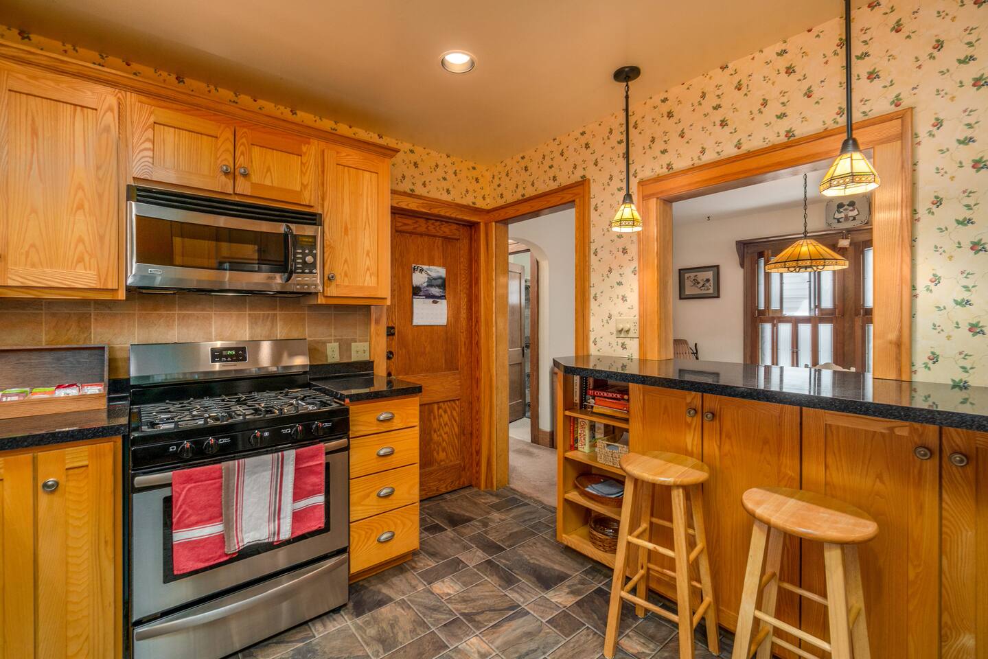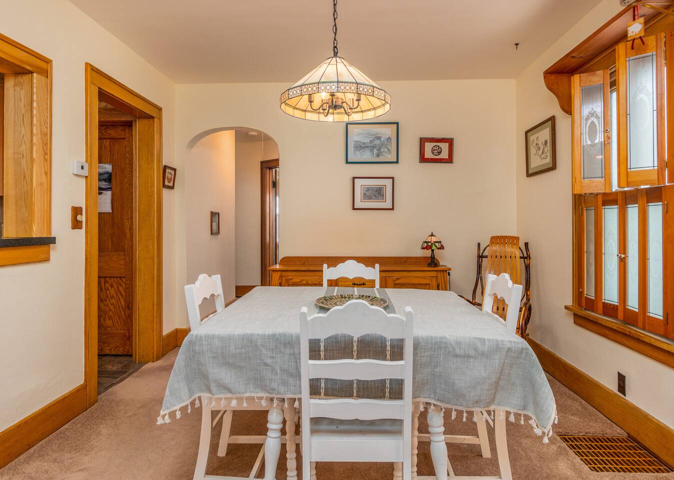 Custom kitchen with all modern appliances. Nice entertainment system. Very comfortable, recently professionally cleaned carpets. This is the first floor apartment of a 2 unit home.